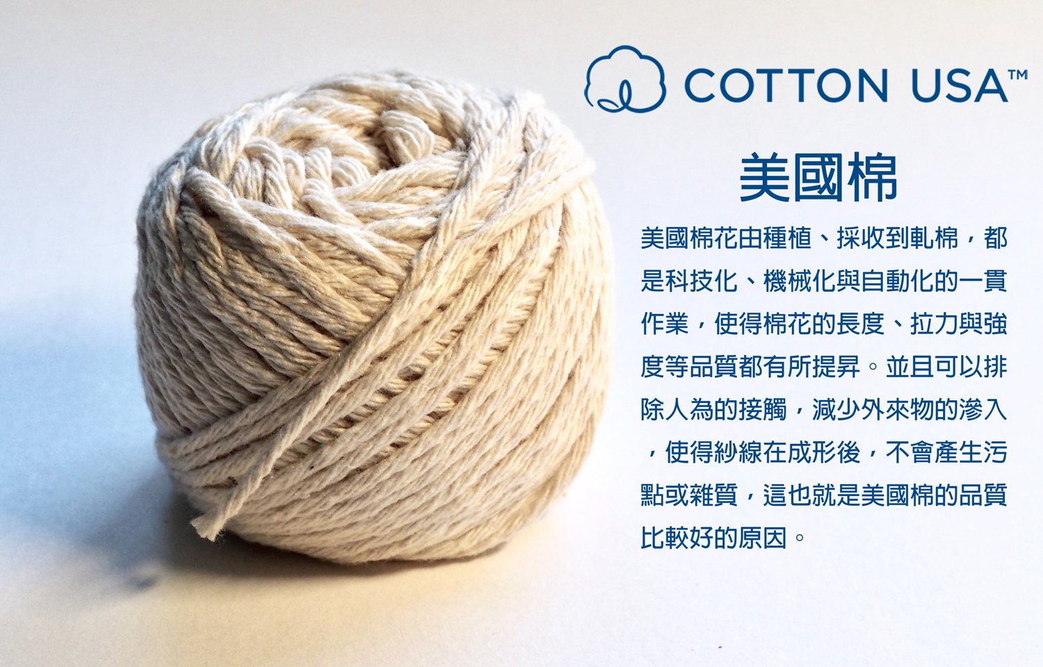 2. 以純棉花為主要原料所紡成,透氣及柔軟性佳